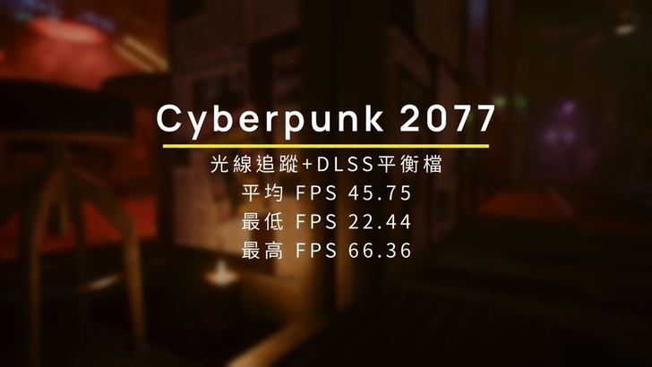 只是跑分很豐滿,現實很骨感,實際跑遊戲似乎有些對不起這 11 萬的身價。首先看到 Cyberpunk 2077,2K 解析度、開啟光線追蹤與 DLSS 平衡檔,平均幀僅有 45 FPS。