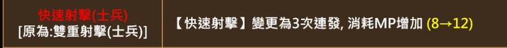 本次針對槍手的改動,我自己覺得最喜歡的是快速射擊(士兵)