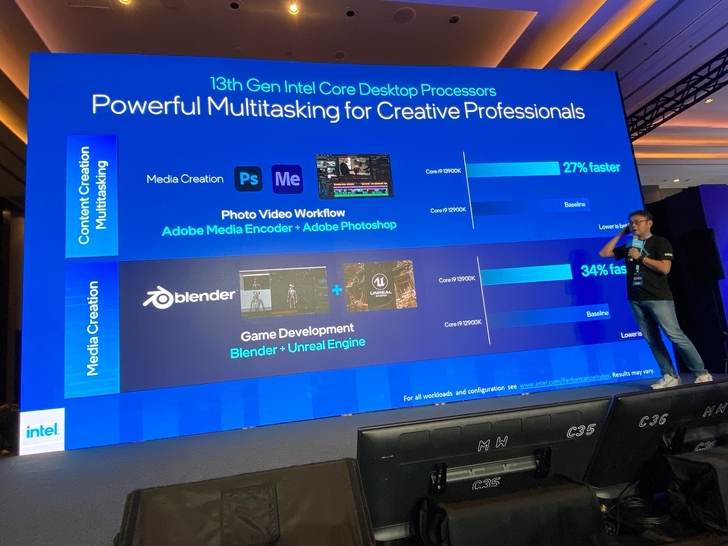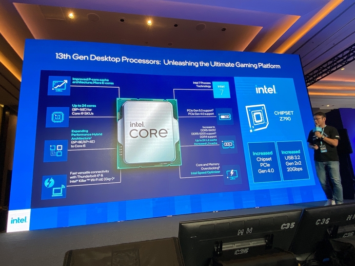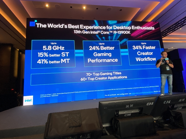 在現場活動中發表與展示了自家最新第13代 Intel Core處理器產品與再度回歸市場的自製顯卡"ARC"與WIFI-6E、Thunderbolt等等新一代技術。 這次產品規格發表後在性能上、價位上、能耗比都取得不少的領先,勢必能再次鞏固其市場領導地位。