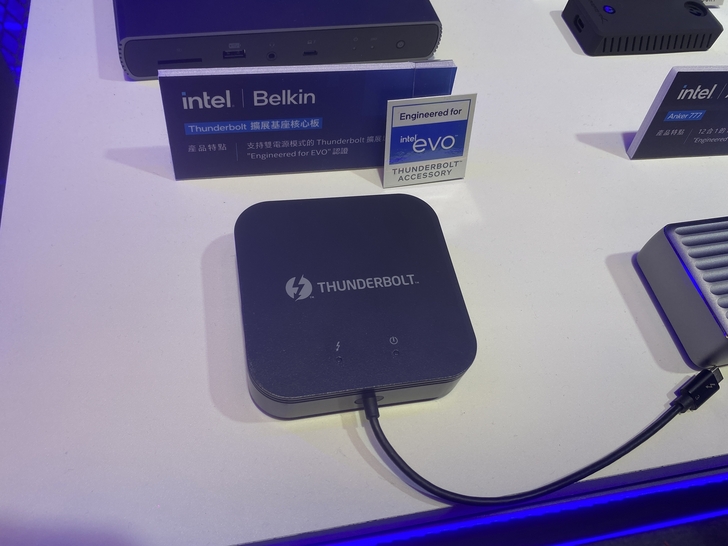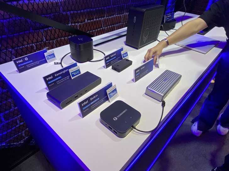 ▼現場展示許多原生支持Thunderbolt規格的擴充設備,全系列外接設備獲得Intel Evo認證。