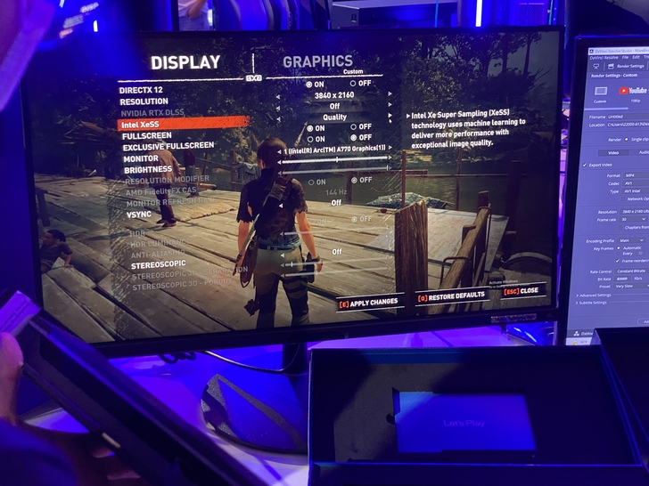 ▼內建的XMX核心支援 XeSS(Xe Super Sampling)畫質提升技術,運用AI人工智慧將原生1080p解析度的畫面拓展至4K UHD。