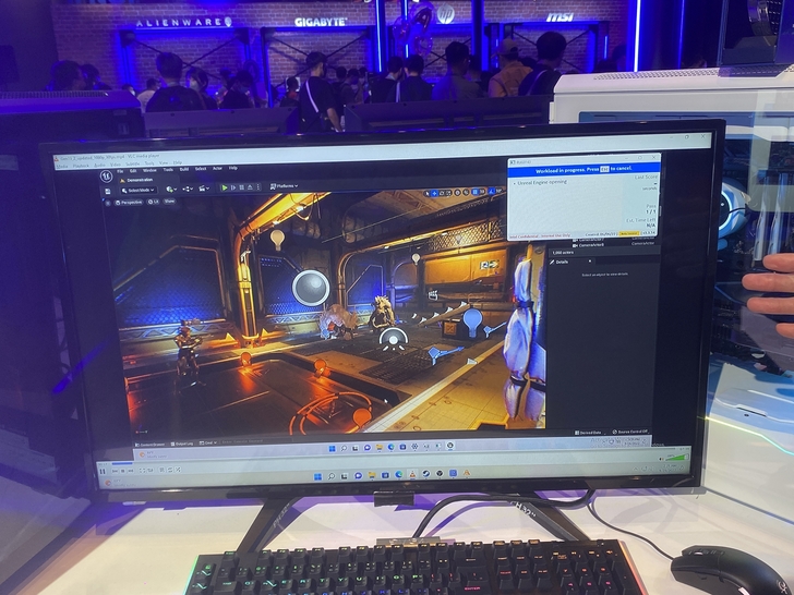 ▼在此處導覽員展示第13代 Intel Core處理器以"UNREAL ENGINE"引擎在遊戲場景下的渲染處理能力。