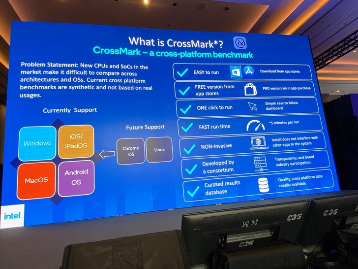 BAPCo 推出旗下首款跨平台測試軟體 CrossMark,同樣追隨 SYSmark 能夠反映真實效能的腳步,選擇 25 項橫跨生產力、創意內容工作、系統反應性的工作負載進行測試,提供橫跨作業系統平台的比較基準。