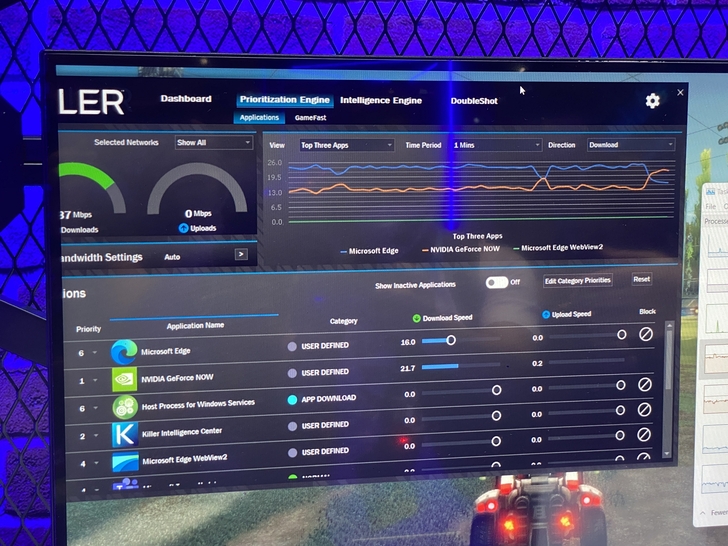 ▼透過Intel KILLER Wi-Fi 6E無線技術,可以讓網路應用程序兵分兩路。