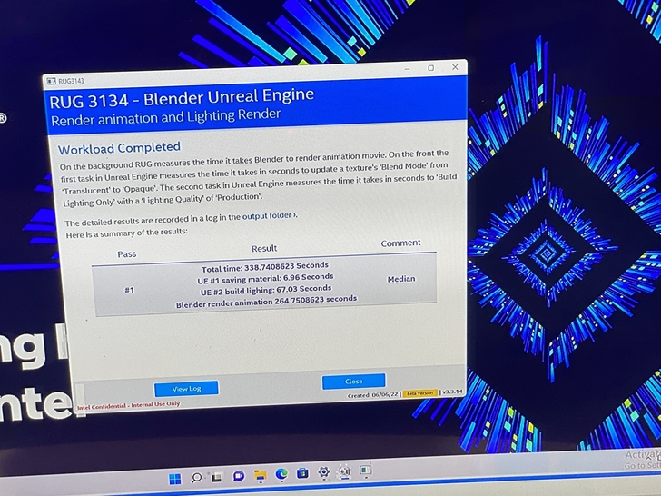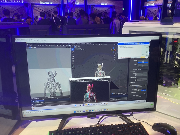 ▼前台(UNREAL ENGINE)由P核心執行運算,後台(BLENDER)則由E核心執行運算。
