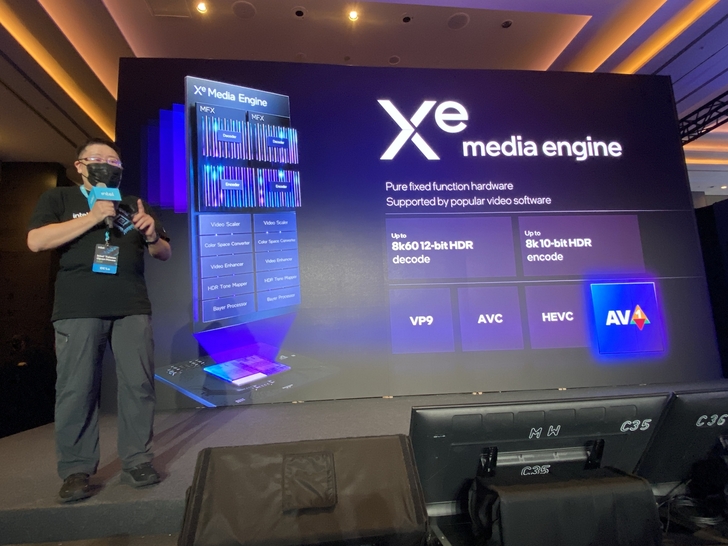 ▼Xe Media Engine : 負責處理影片編碼解碼(支援8K60 12-BIT HDR decode、8K60 10-BIT HDR encode)並支援完整AV1硬體加速編解碼。