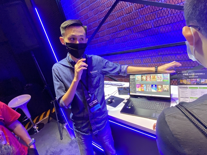 現場示範使用"GeForce Now"串流遊戲平台模擬家庭使用情景。