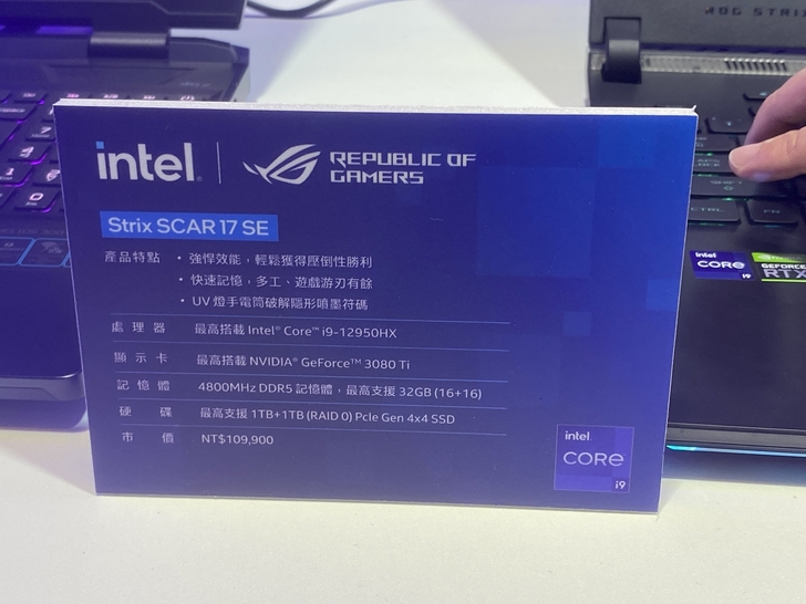▼現場展示ROG的電競筆電Strix SCAR 17 SE搭配頂級的NVIDIA GeForce 3080Ti 。