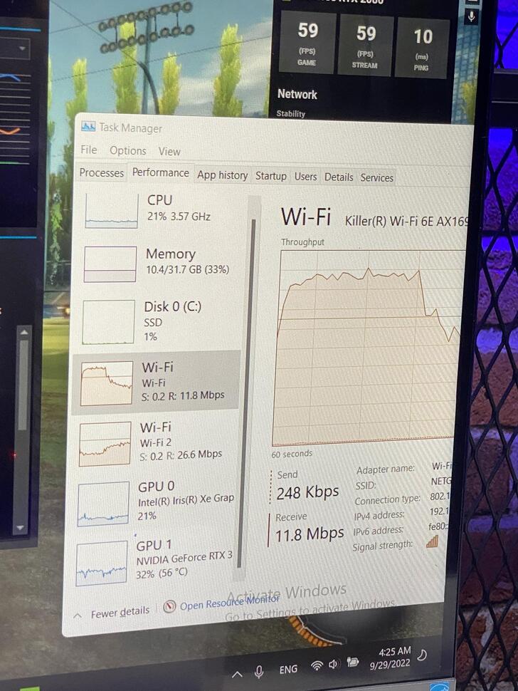 ▼使用Intel KILLER Wi-Fi 6E無線方案,訊號表現更為穩定。
