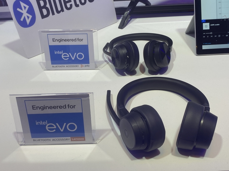 ▼主要擺放play和Lenovo兩款廠牌無線藍芽耳機皆通過Intel Evo認證。