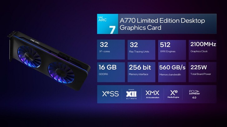 ARC A750 GDDR6記憶體規格供8GB 512Gbps GDDR6 記憶體。