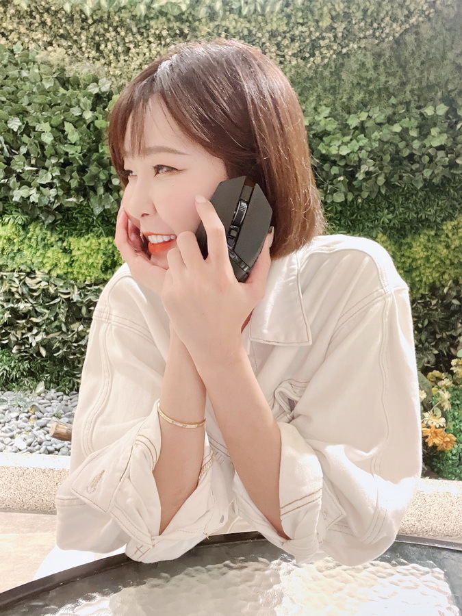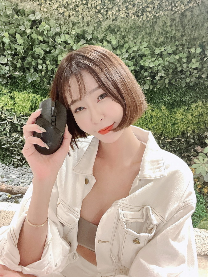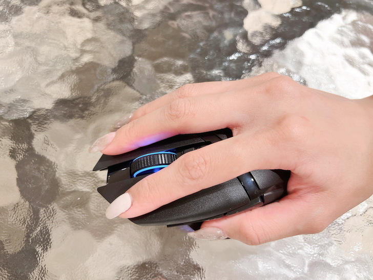 ▼ 把滑鼠拿給有做水晶指甲的美女操作看看,雖然使用起來也完全不受影響,但是大姆指距離 靈敏度觸發器 仍是有一小段距離。