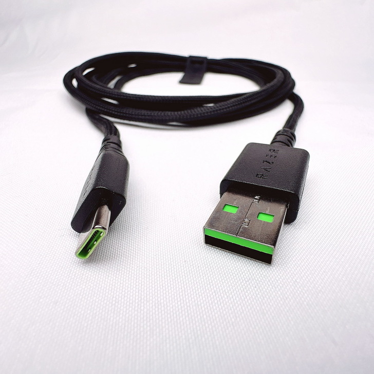 ▼ Razer Speedflex Type-C 纜線 - 兩端都有保護蓋,超柔軟輕巧又不易打結的連接線,滑鼠就算接線也不影響使用體感。