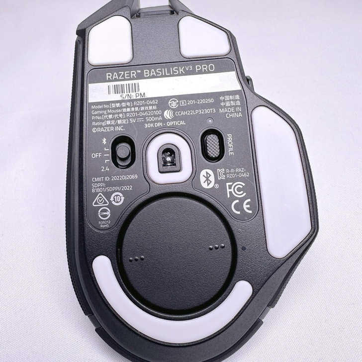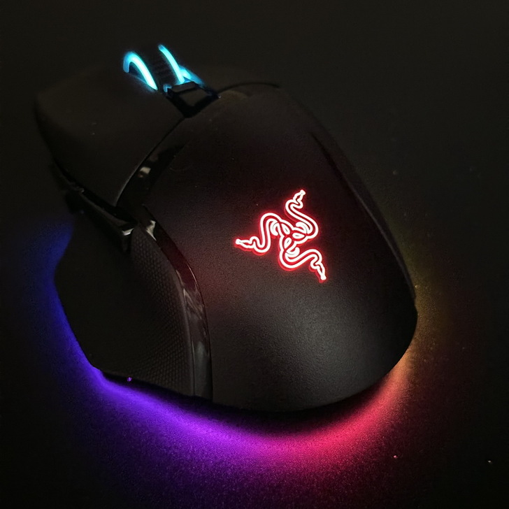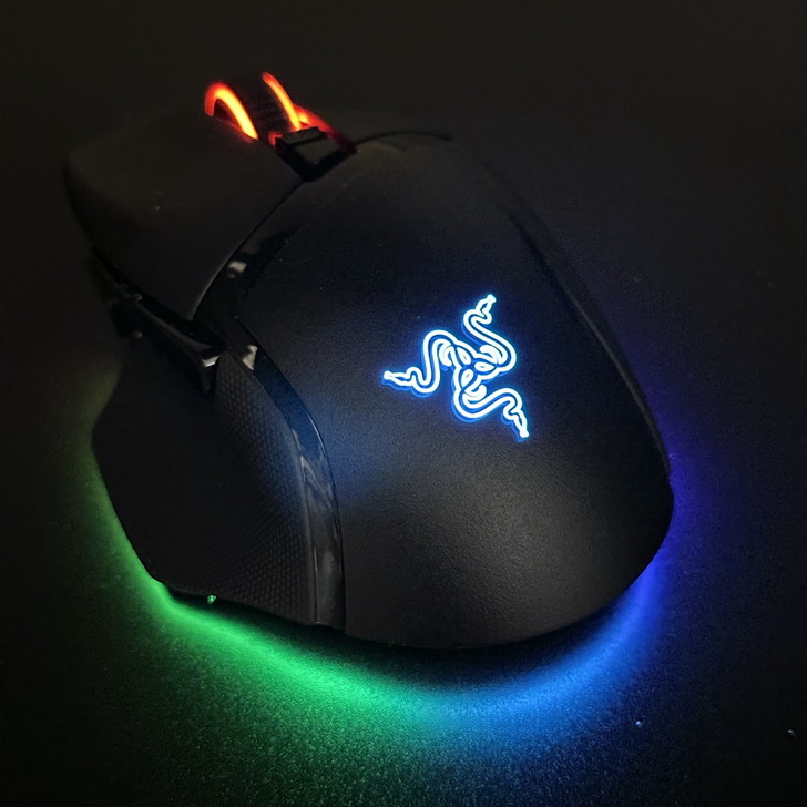 ▼ Razer Basilisk V3 Pro 擁有 13區 Chroma燈光效果,底部的燈光顯示效果明顯。