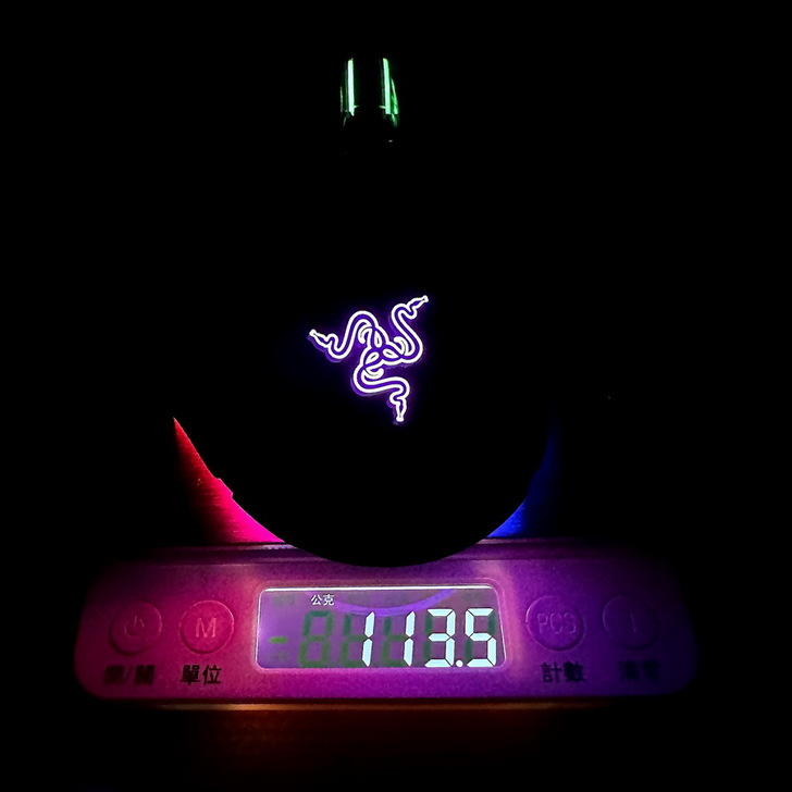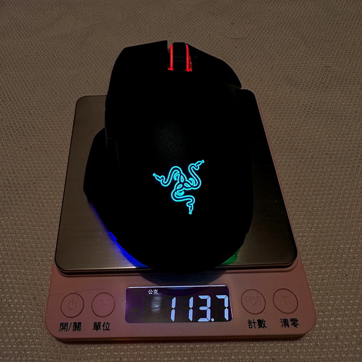 ▼ 忍不住還是測了一下單滑鼠的重量,大約在 113.5~113.7公克。