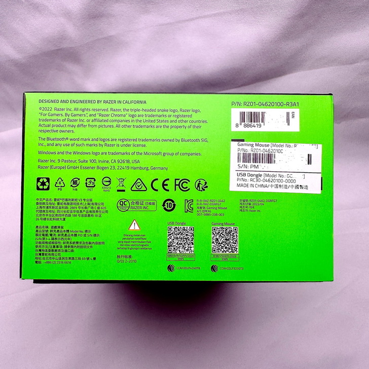 ▼ 盒裝底部 - 中文名稱:電蛇 巴塞利斯 V3 專業版,另外有一堆安規認證。
