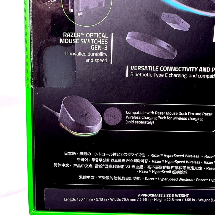 ▼ 盒裝正面 - 雷蛇經典的黑綠配色,產品圖示就可看出是右手專用設計,下方則標示出特色。