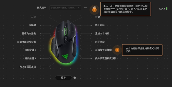 ▼ 另外就是針對 Razer HyperScroll傾斜滾輪 可以做的設定