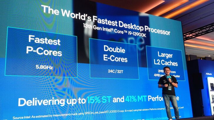 接著,就是INTEL PM Director介紹最新的INTEL 13th Core CPU 『Raptor Lake』,並且秀出盒裝版本i9-13900K!
