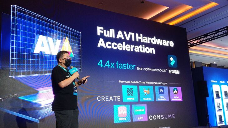 INTEL ARC Xe 核心也支援免費影像串流編碼模式AV1,直接使用AV1硬體進行編碼速度比純軟體編碼快了4.4倍,同時可以降低CPU的使用率!