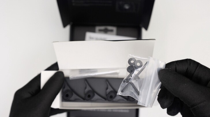 配件盒中為 Push Pin 的配件和普通防震支架的風扇固定螺絲。包括四組普通防震支架和四組 Push Pin 及其墊片。四顆固定螺絲則是方便固定在機殼的標準黑色螺絲。