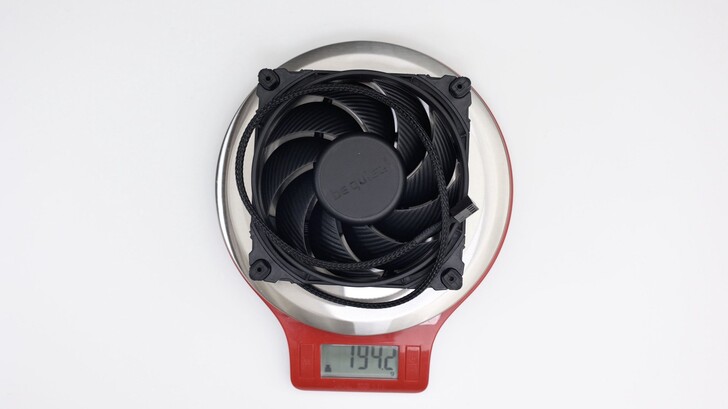Silent Wings 4 120mm PWM 重量約 194.2g。風扇線外層有黑色編織線保護,小加分。