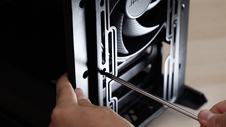 在正式裝機前,也嘗試使用 Push Pin 的支架安裝在機殼上,我覺得安裝手感偏硬,應該是為了將風扇牢牢固定住,避免額外的振動噪音。且因為其有倒鉤設計,管道中也有段落感的槽位,卸下時會需要大力一點。安裝程度上不敢說一定比螺絲方便,但我覺得軟墊效果真的很 Q 彈。