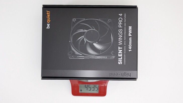 Silent Wings Pro 4 140mm PWM 盒裝重量約 453.5g。