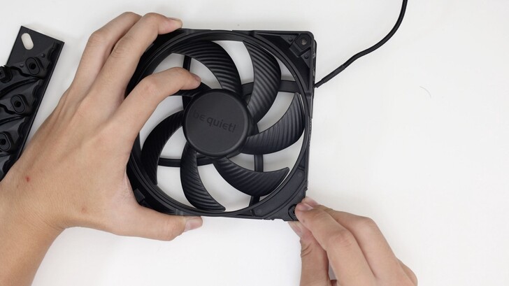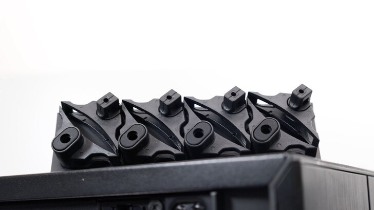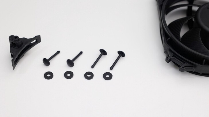 旗艦的 Silent Wings Pro 4 則有三組支架配件,Push Pin、螺絲固定橡膠元件和預裝的硬式塑膠元件。