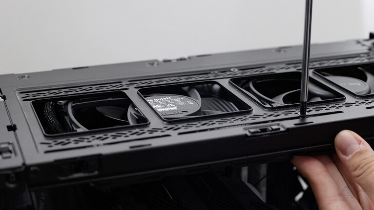 還好這款機殼頂部是免螺絲可以快速打開頂蓋,因此不管是安裝還是調整風扇轉速檔位都滿方便,不會因爲機殼而卡到 Switch。