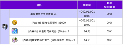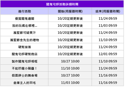 活動期間: 2022/10/20 (四) 更新後 ~ 2022/11/24 (四) 09:59 (各伺服器為準)
