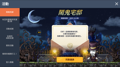 ① 進入鬧鬼宅邸前,必須在[活動] > [鬧鬼宅邸]中同意邀請。
