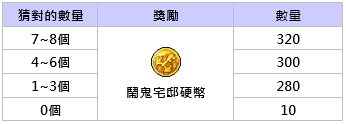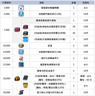 透過萬聖節活動獲得的「鬧鬼宅邸硬幣」數量多寡領取獎勵,分為一般獎勵和優質鬧鬼通關獎勵,