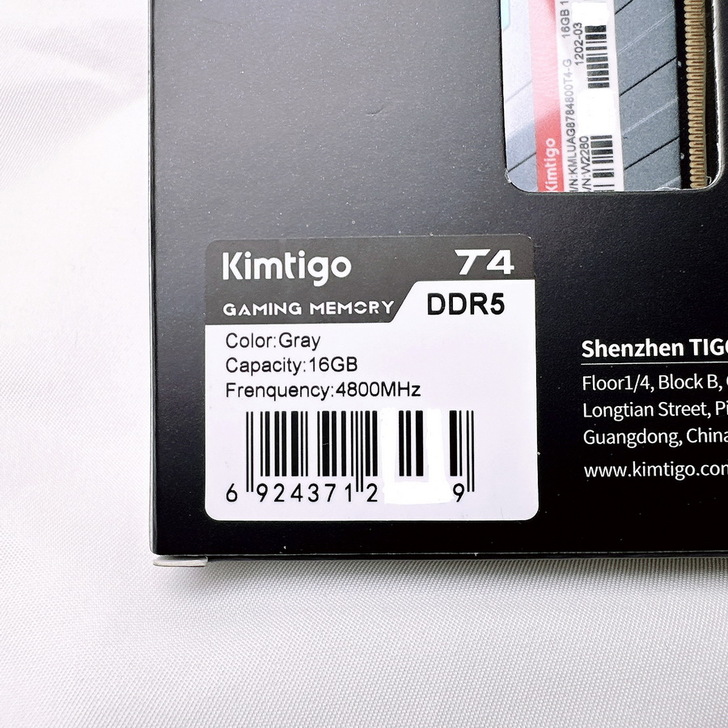 RAM:金泰克 速虎T4 DDR5 4800MHz 16GB*2