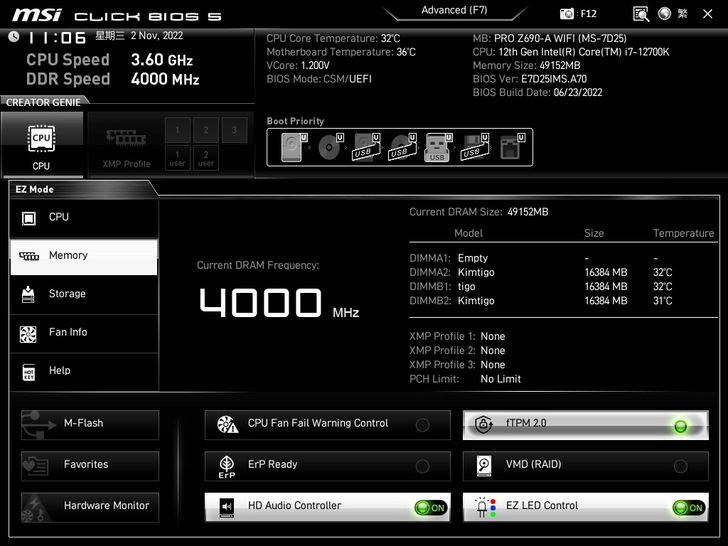 由以下的狀況可知 INTEL Z690 不論是加到三條或四條 DDR5記憶體,會強制跑 4000MHz 基本安全能開機的情況,就算是記憶體有支援XMP也是一樣的狀況。