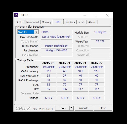 ▼ CPU-Z 驗明正身!記憶體 總容量 32GB、單條 16GB、美光顆粒、4800MHz。
