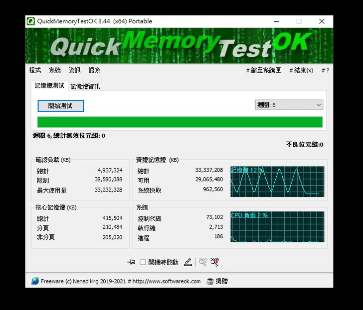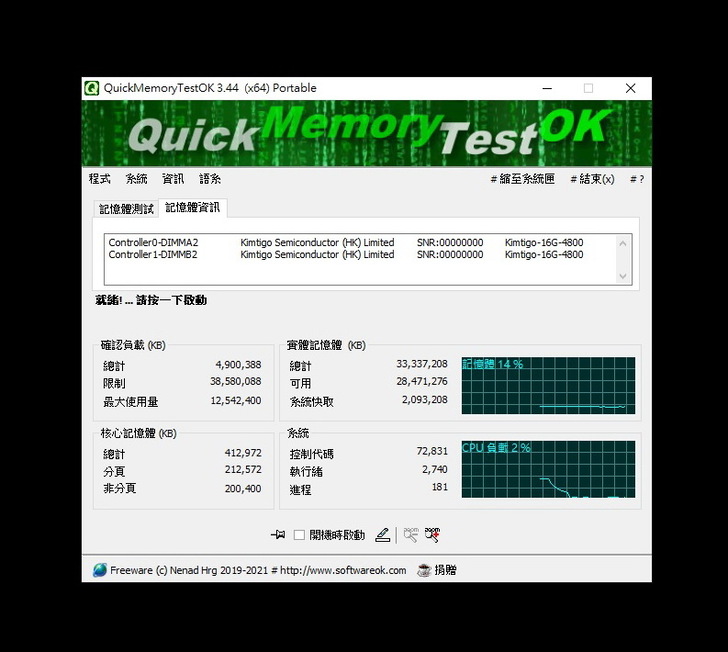 ▼ 比較之前開箱 Kimtigo 盤虎 單條16GB,那時的 MemTest64 記憶體測試 耗時,相比這次的 速虎T4 16GB*2 可說足足多出一倍以上。