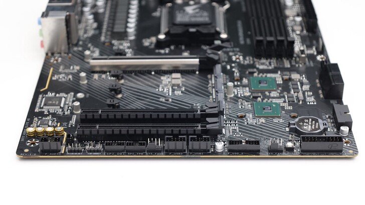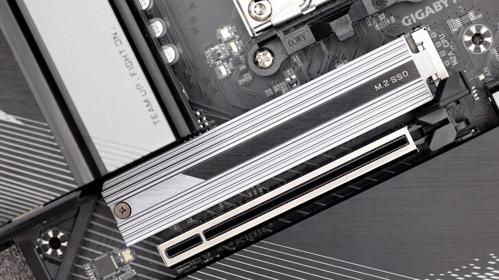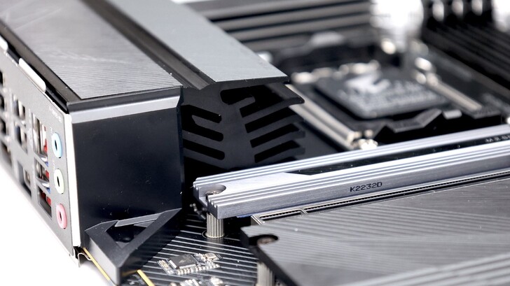 SSD 散熱片直接覆蓋三條 M.2,最大支援到 22110,對於有多條 SSD、企業級 SSD 的使用者來說非常方便,只要拆一個散熱片就可以換三條 SSD。支援 PCIe Gen5 x4 的第一條 M.2,支援 25110 規格。