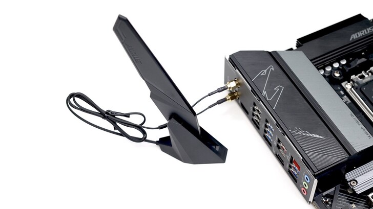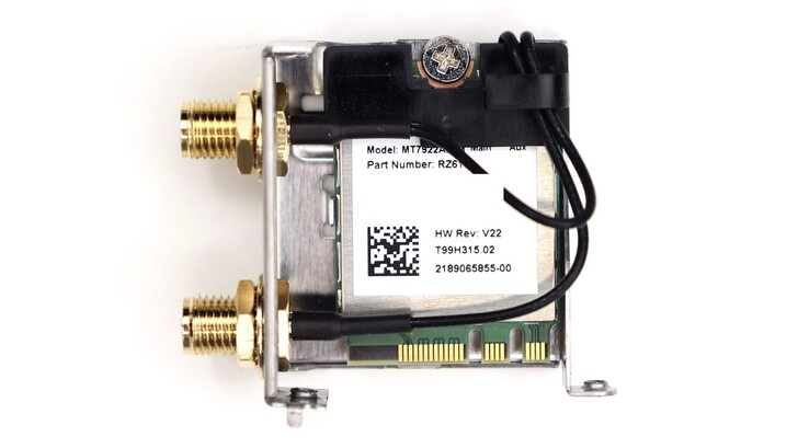 無線網卡使用 MediaTek MT7922A22M,即為 AMD RZ616 Wi-Fi 6E,直接插在後 I/O 遮罩下的插槽。支援 WiFi 6E,2x2,160MHz,理論頻寬最高 2.4Gbps。支援藍牙 5.2。