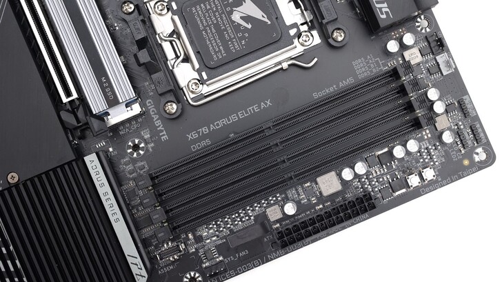 GIGABYTE X670 AORUS ELITE AX 在外型設計,是目前 X670 / X670E 中我滿喜歡的款式。對比自家前兩代 X570S AORUS ELITE 和 X570 AORUS ELITE,視覺上的線條更加整齊樸實,去電競感。