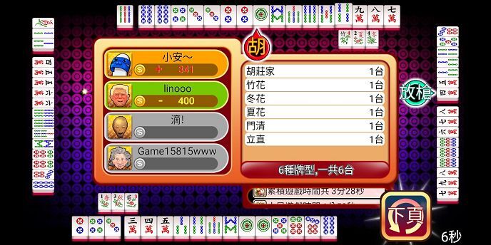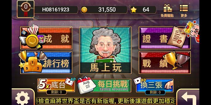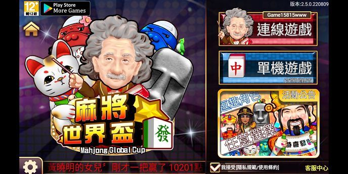 [遊戲名稱] 麻將世界盃 (單機+連線) [遊戲語言]正體中文、簡體中文、英文 [使用權限]免費無任何權限 [更新日期]2022/10/25 [遊戲簡介] 最道地的台灣16張麻將,有連線版與單機版。 [遊戲特色] * 單機加連線,單機版還有初學者救星(換三張)讓您愉快地玩輕鬆地打,享受胡牌的樂趣! * 台數採見字見花,道地台灣味 * 神功有成後再進連線版,輕鬆獲得賭神稱號。 [遊戲截圖] [下載點] Google Play IOS APPLE STORE Android 官方APK下載 讚 收藏 快速回應 引言回應