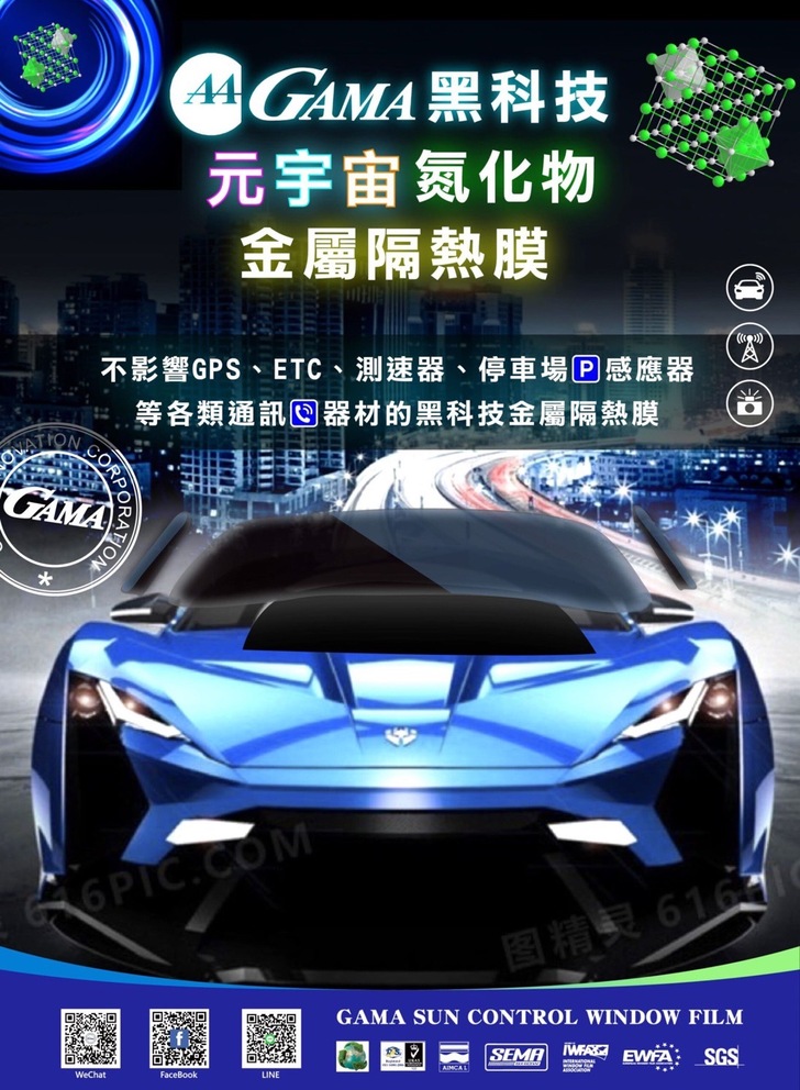 GAMA黑科技元宇宙氮化金屬膜是運用高分子分散技術加上二元過渡金屬氮化物薄膜,並透過氣體流量比為基礎,再採用高清亮基材通過高精密塗布複合技術製程創造雙層複合的高品質PET功能膜,結合上氮化物膜的微觀結構、形貌、電學性能和電化學性能的種種特性,對紅外線進行選擇性有效阻隔,同時不影響可見光穿透率;GAMA氮化金屬隔熱紙的主要優勢是經久耐用、不易腐蝕,更能擁有金屬成份卻不干擾電磁信號等特性;其良好氮化金屬隔熱性能可大大降低能源消耗,實現節能環保。