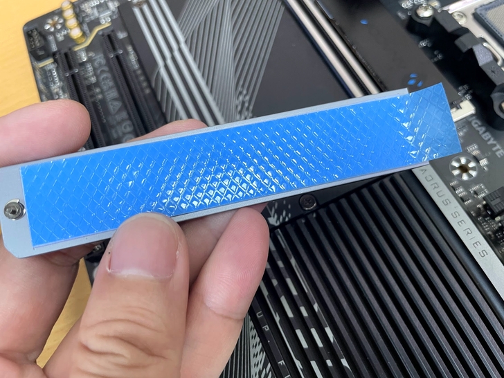 散熱片除了裝飾外, 也有實質的功能幫助 M.2 SSD 進行降溫, 後面會有相關的實測數據, 使用前記得把藍色薄膜給去除.