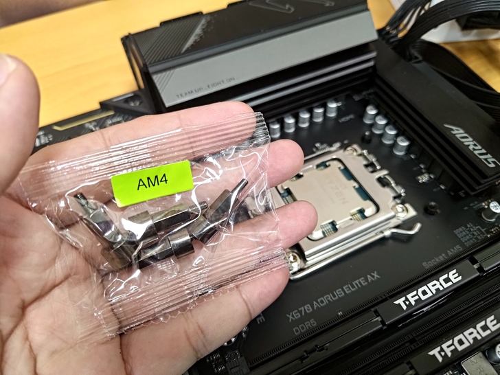 雖然 AM5 表明說支援 AM4 散熱器, 但因為 AM5 主機板的背板鮮少進行拆卸, 因此手上的 AM4 散熱器若是要沿用原散熱器專屬的背板, 那基本上在 AM5 主機板上可是行不通, 是無法順利進行安裝的.