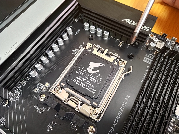 雖然說改 LGA插槽可以減少 CPU 被連根拔起的狀況, 但安裝 7700X 仍要看缺口防呆裝置, 不要覺得看起來可以就強壓下去, 那就真的要吃冷筍(人損)了.