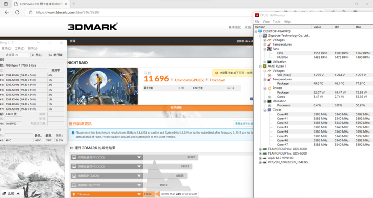 至於 X670 AORUS ELITE AX 以及 VUCAN Alpha DDR5-6000 這組記憶體的超頻性也不差, 直接調整到 6400 一樣穩定順順跑, 不用而外去設定什麼CL值什麼的, 我想除了記憶體本身體質不錯以外, 選擇八層板應該還是有幫助的.