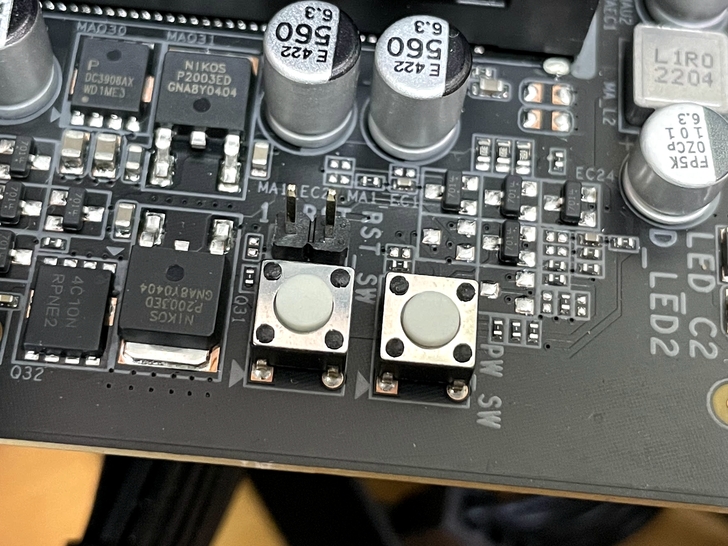 雖然板子上按鈕沒有 MASTER 大師板來的漂亮, 但以功能性來說有開關/重開以及 CLR_CMOS_SW的配置筆者是更加喜愛, 當然有些人會覺得「都花到上萬元了, 怎不考慮直上 X670E 戰未來?」, 目前看起來僅有PCI-E 5.0通道數的差別, 假設真的要戰未來, 明年會上市的 M.2 PCIE Gen5 的 SSD 肯定又會是天價, 說不定還有解熱上的問題, 還不如將 6000 元的價差省起來, 補一條 PCI-E Gen4 的 2TB SSD, 爽度才是真正有感!!