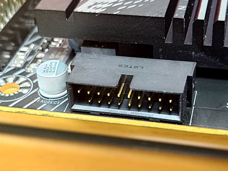 USB 19Pin 可能也受到機殼透明玻璃的影響, 配合絕大多數的機殼背板理現挖孔改成90度出口, 整線裝機就不會很突兀地垂一條在機殼裡面.