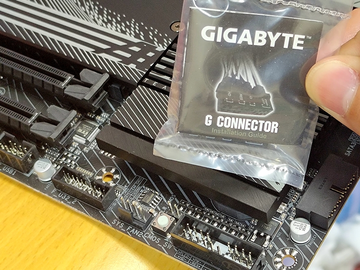 配件有神鷹造型的天線與SATA線材, 新手主電腦的大魔王也就是插機殼電源開關線材, X670 AORUS ELITE AX有附上快速接頭的小裝置, 就算你有胖手指也可以輕鬆安裝線材, 不用擔心接錯線材.