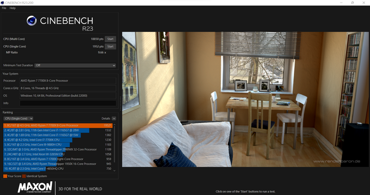 後來觀看了一下網路上的教學影片, 可以藉由設定溫度牆, 調整電壓以及核心時脈, 來換取更好的性能表現, 就算今天僅是使用空冷散熱器也能穩定運行, 可以看到 Cinebench R23 的多核成績輕鬆突破 20000 大關, 但單核部分因為降頻的關係, 所以成績下降一些是正常的.